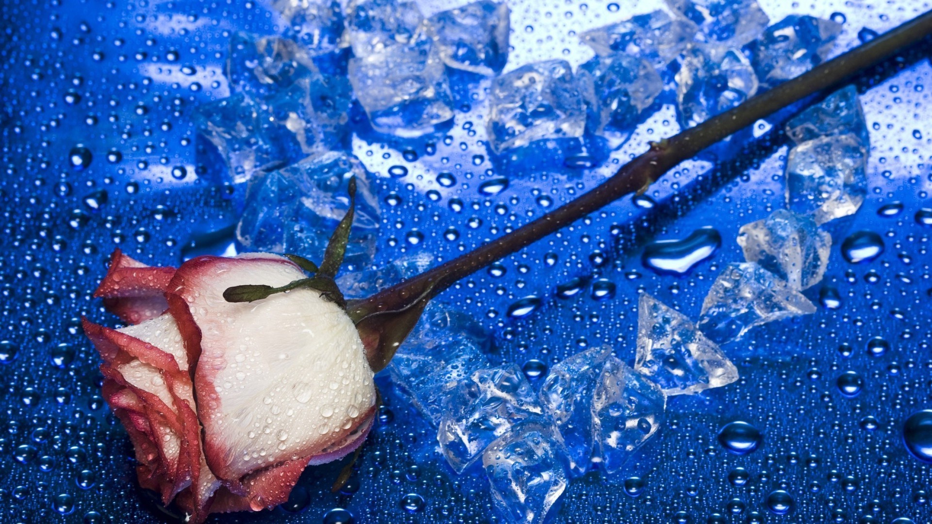 Rosa vermelha e branca em um coração de gelo - papéis de parede