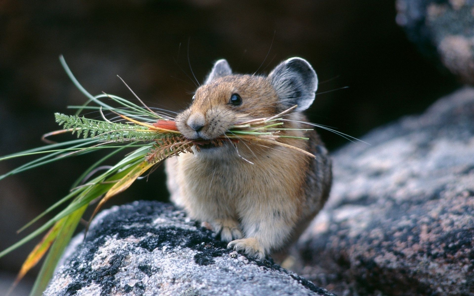 Roedor carrega grama em seus dentes - papel de parede no telefone