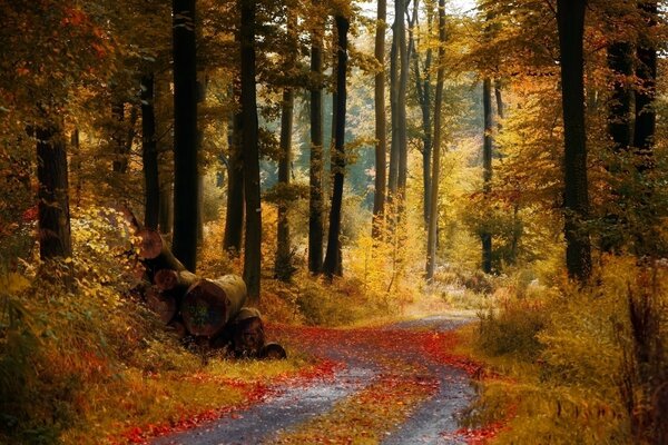 Floresta no outono em folhagem amarela