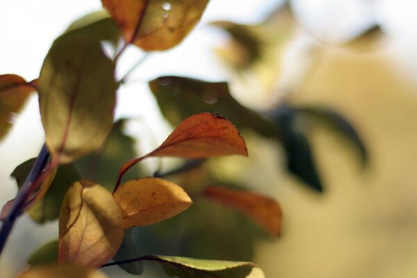 Folhas coloridas em um fundo desfocado