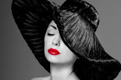 Senhora glamourosa com lábios vermelhos