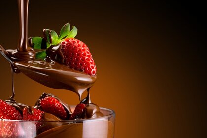 Sobremesa morango em chocolate amargo