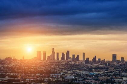 Cidade ao pôr do sol no protetor de tela