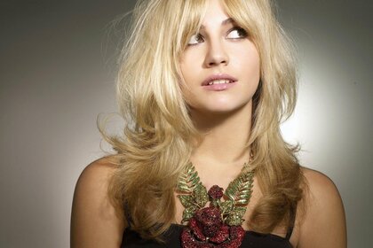 Retrato de uma loira com cabelos longos