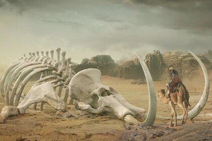 Viajante, restos, paisagem deserta