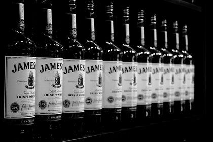 Fotografia Macro de garrafas de uísque em fundo preto