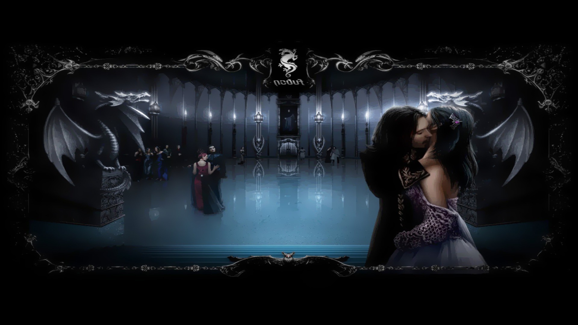 Casal beijando no fundo da estátua do dragão - papel de parede no telefone