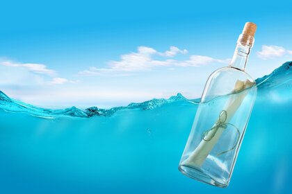 Garrafa com nota flutua na água