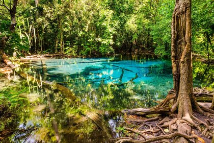 Lago com água transparente na floresta