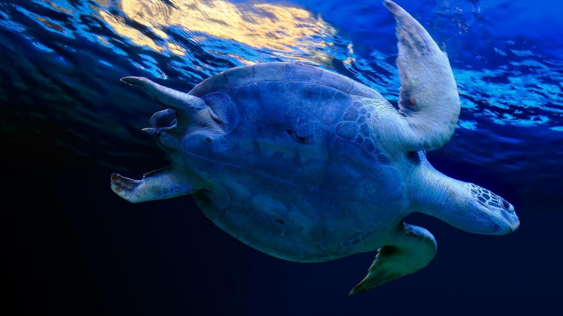 O mundo subaquático na palma da sua mão. o oceano como um aquárioO mundo subaquático na palma da sua mão. O oceano como um aquário