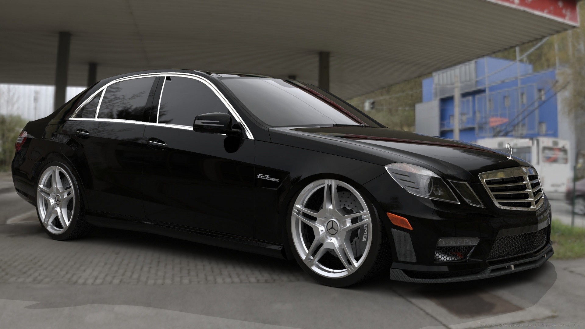 Gráficos 3d, carro em pé sob um dossel no quintal da casa