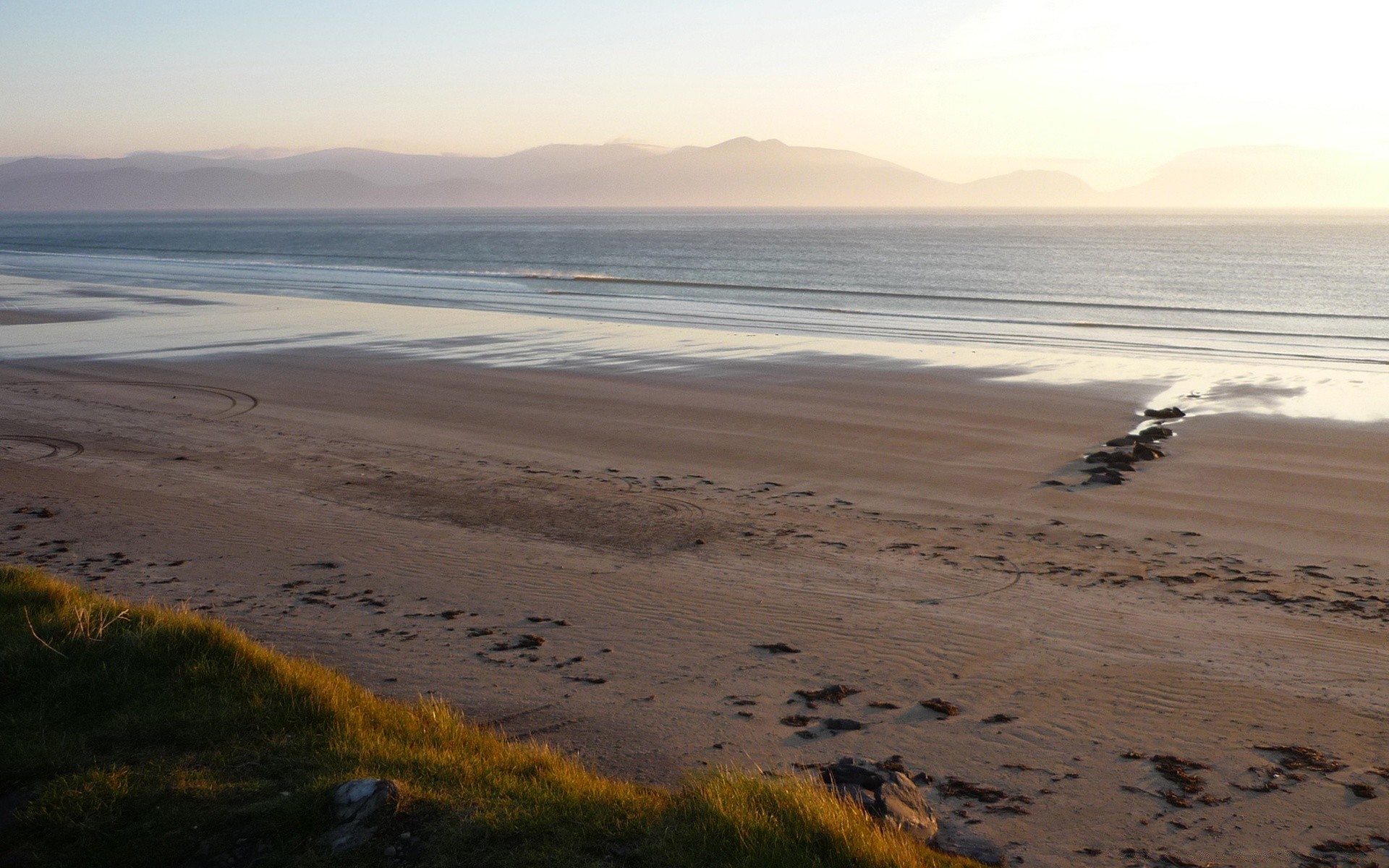 Praia de verão com pegadas humanas