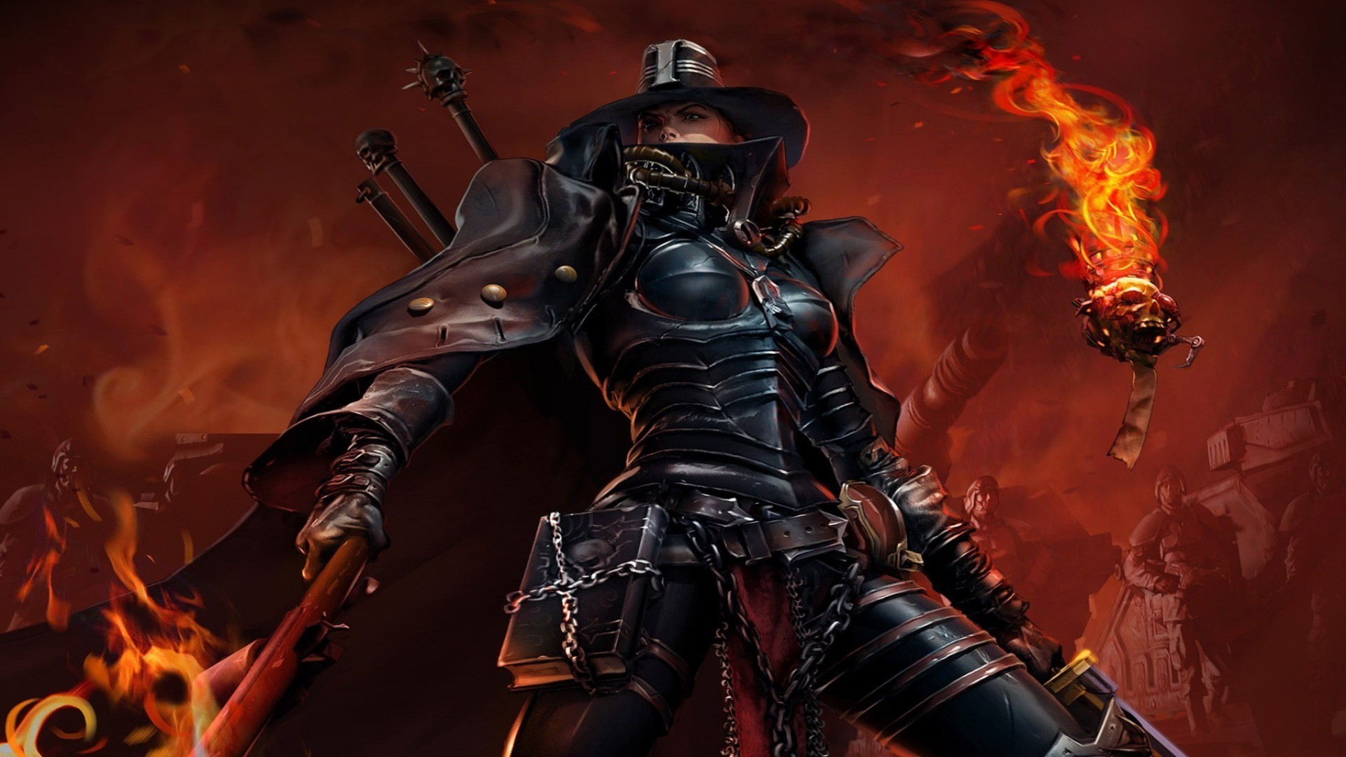 Herói fantástico com uma tocha em Armadura