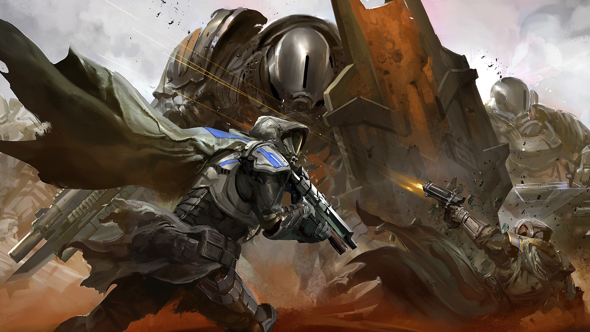 Ilustração de um personagem com uma arma e um plano de fundo desenhado