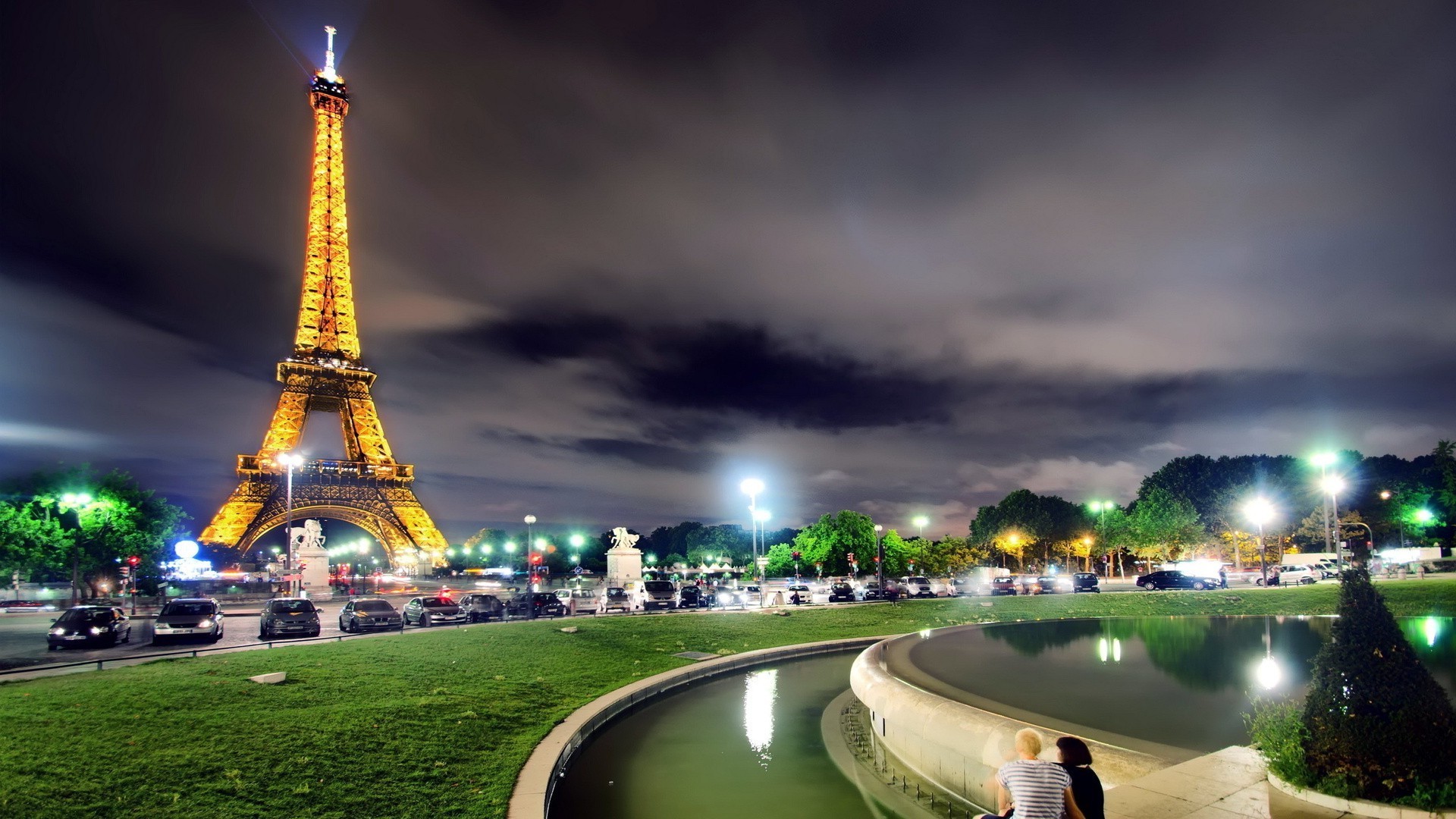 Locais arquitetônicos famosos na cidade noturna