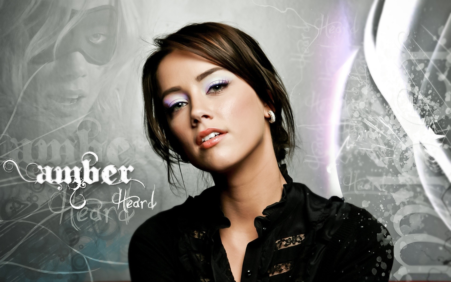Retrato de Amber Heard em uma blusa preta em um fundo abstrato