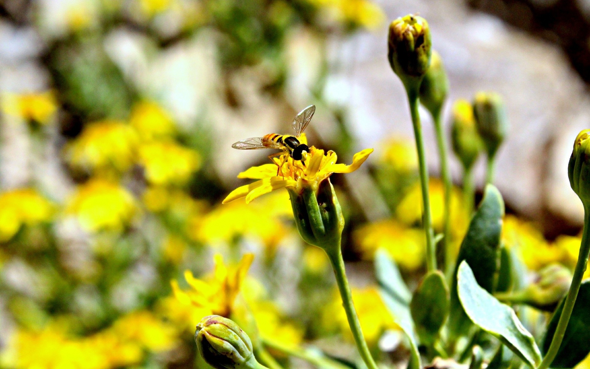 Inseto senta-se em uma flor amarela