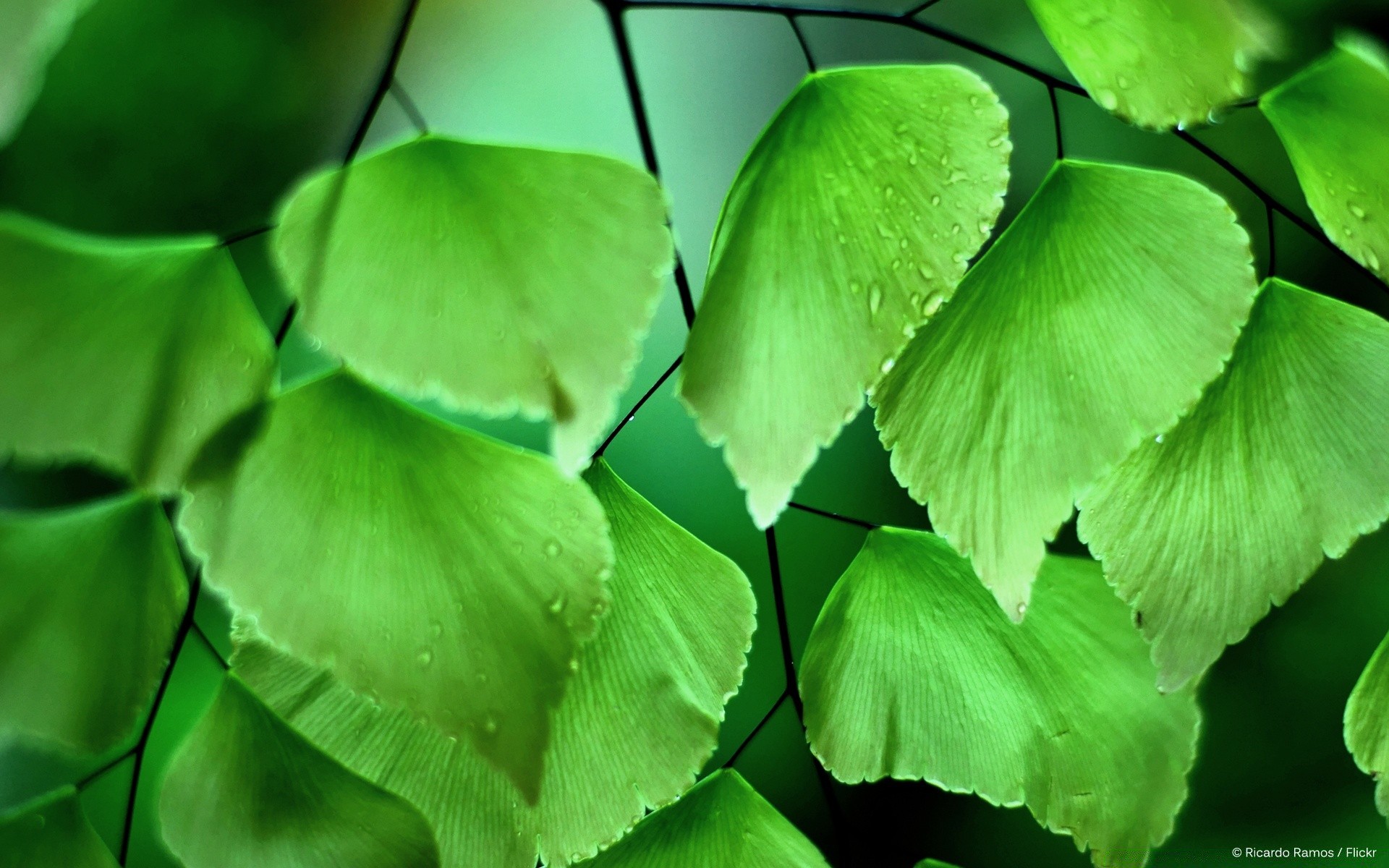 Folhas verdes com gotas de água