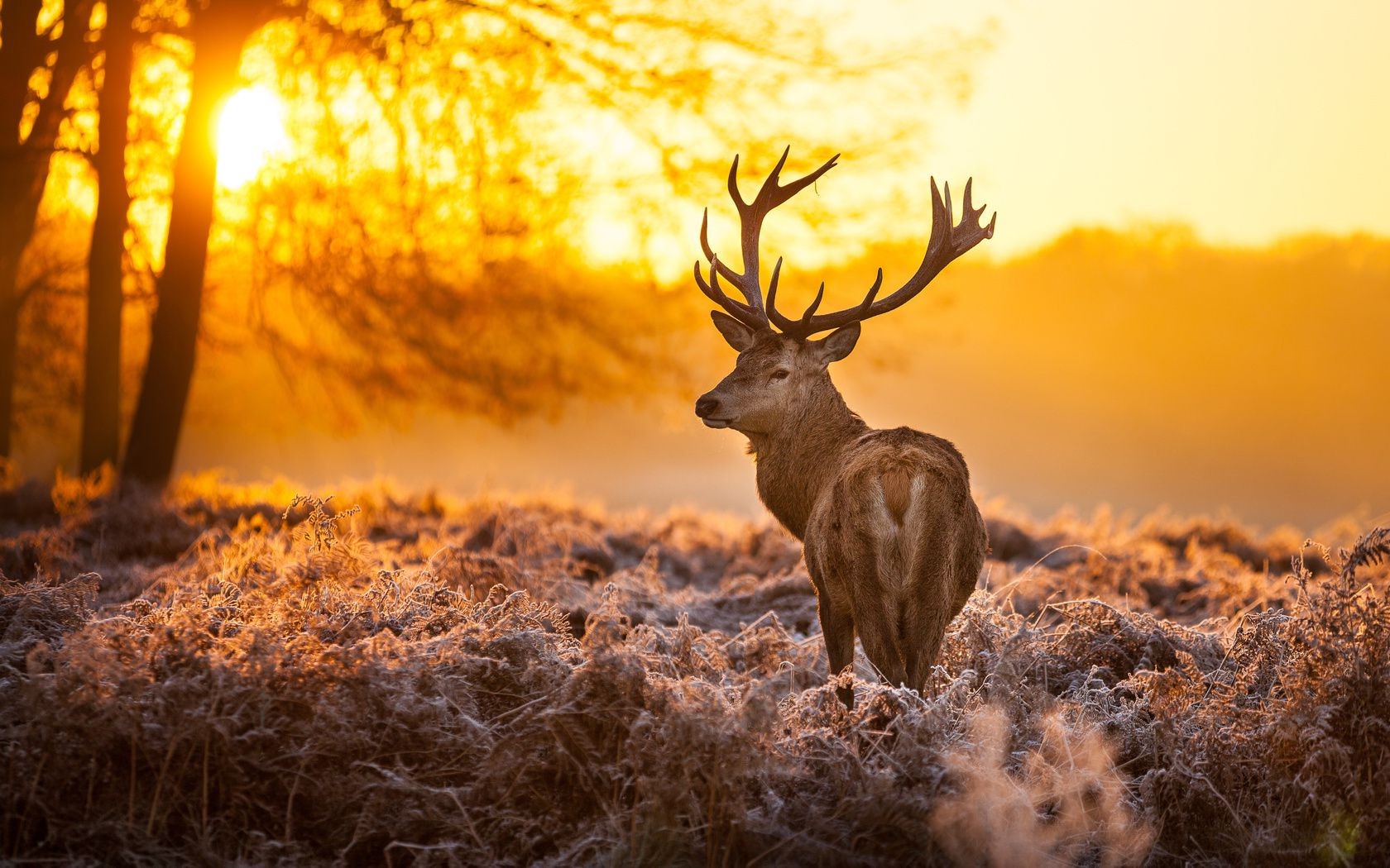 Os raios do sol ao amanhecer através dos galhos das árvores