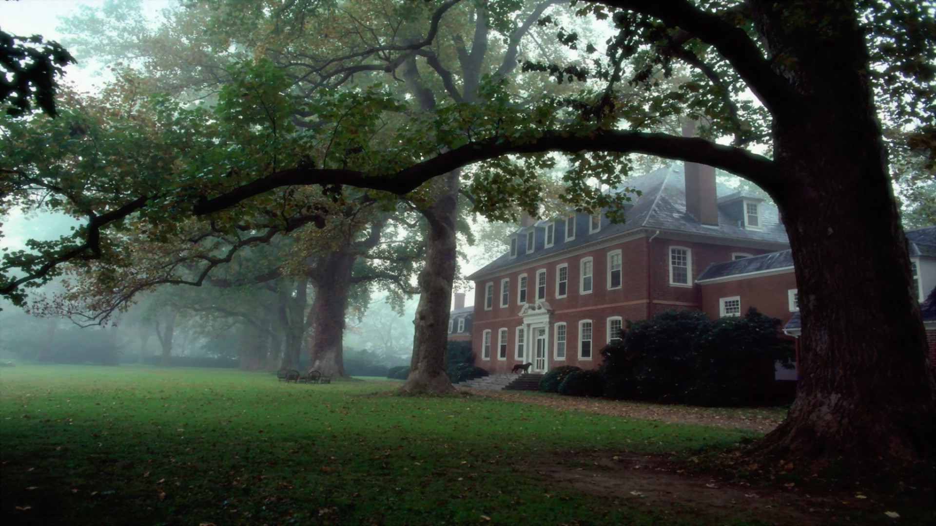 Castelo ao amanhecer no nevoeiro