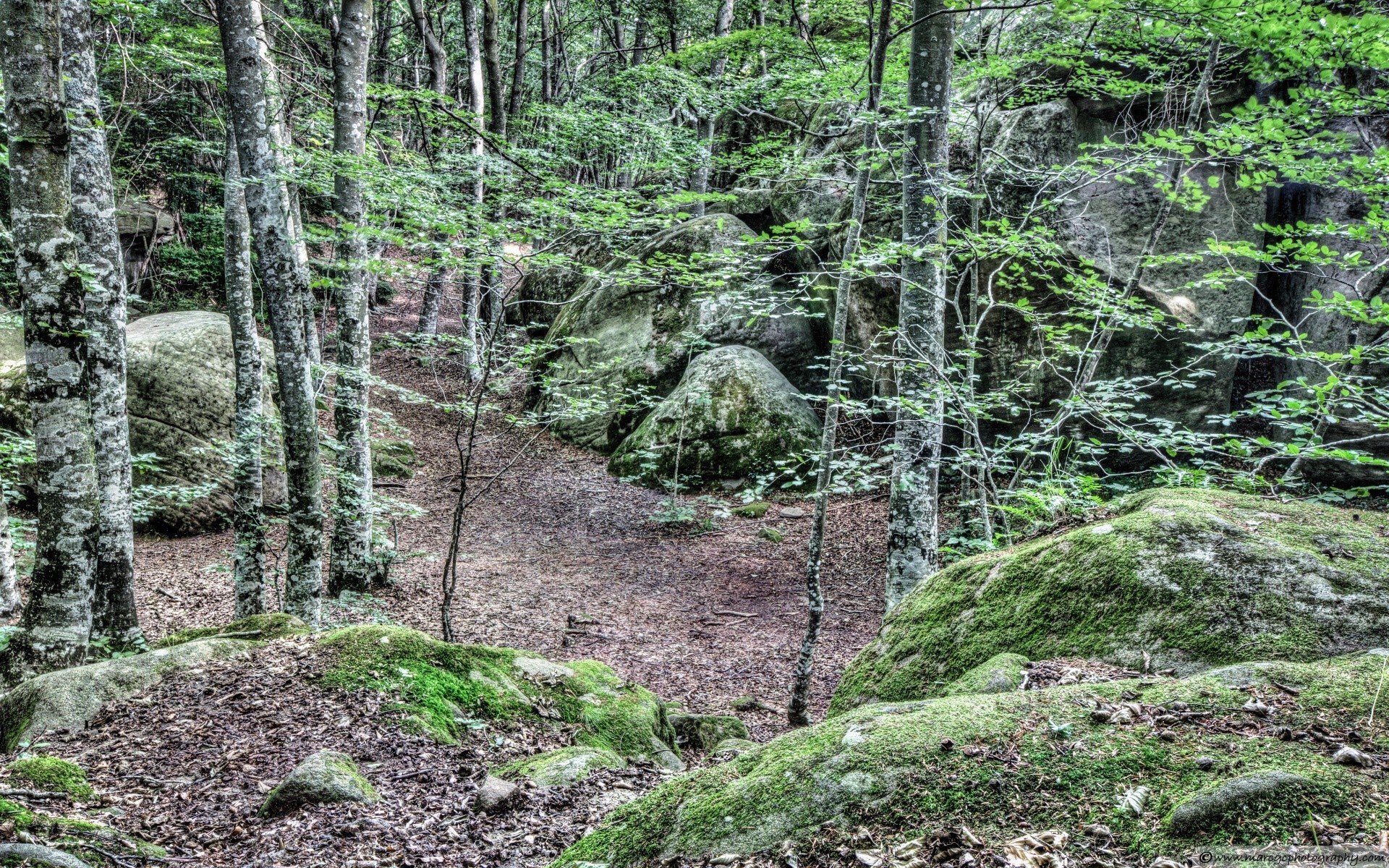 Árvores tropicais verdes brilhantes banhadas pelo sol