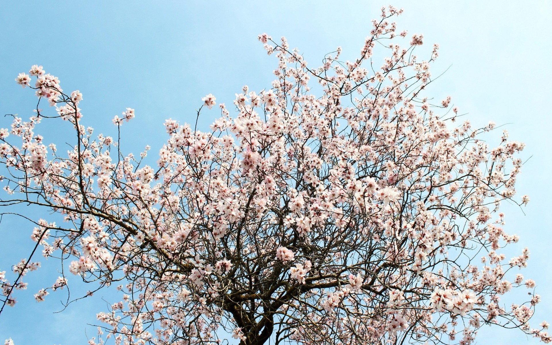 Árvore de cerejeira em flor. Árvore rosa no fundo do céu
