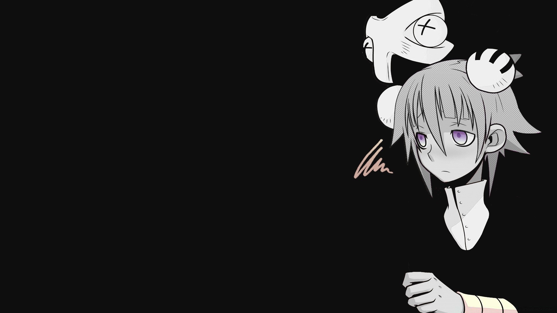Anime imagem de uma menina com olhos roxos