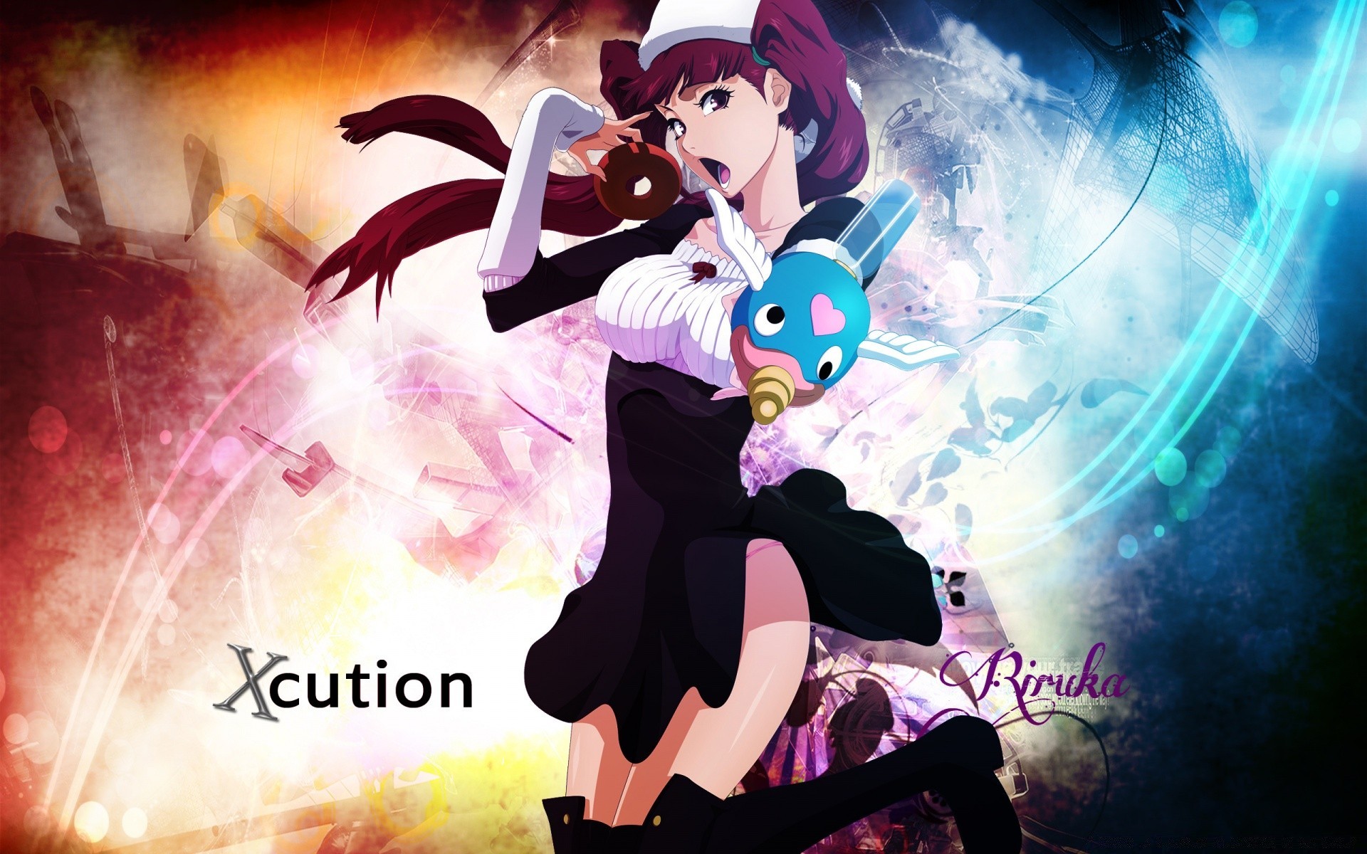 Anime meninas em fones de ouvido em um fundo vermelhoAnime meninas em fones de ouvido em um fundo vermelho