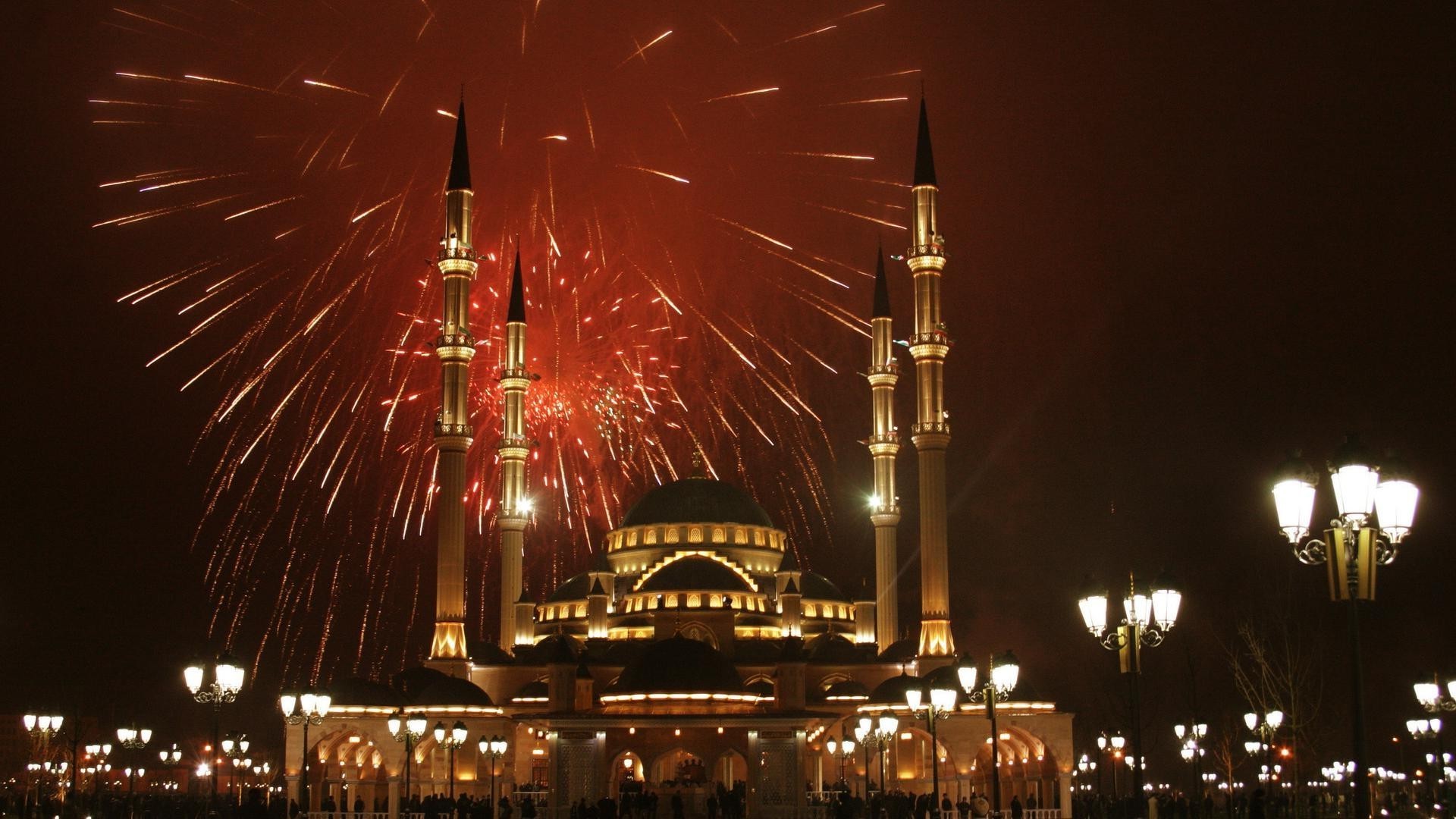 Saudação noturna sobre uma bela cidade com arquitetura