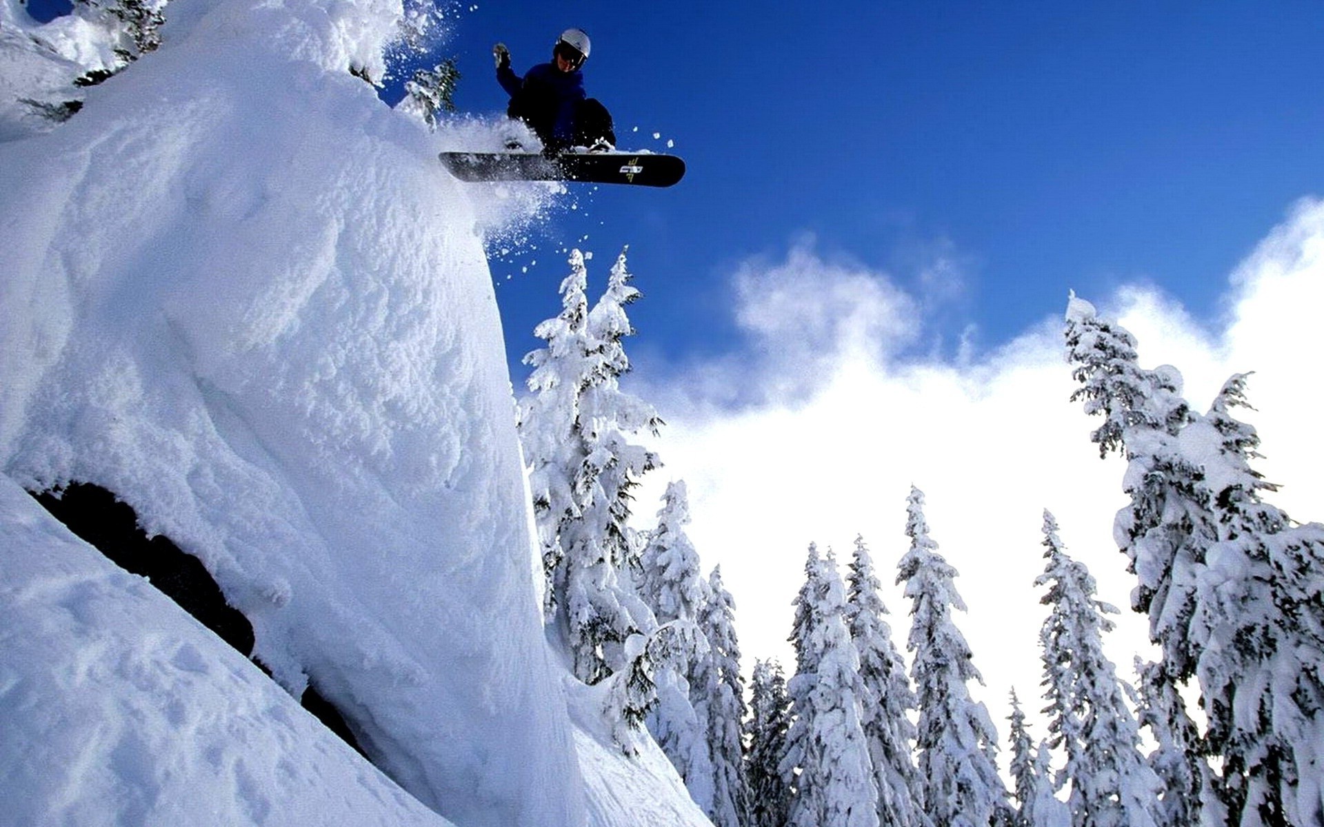 Snowboarder faz um vôo através ель da montanha