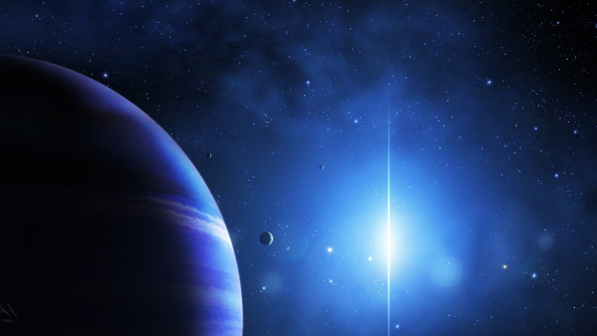 Planeta em tons de azul contra a água