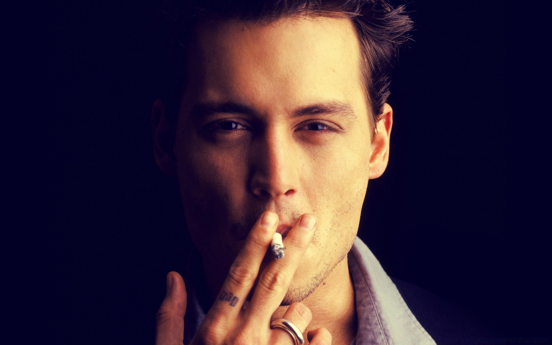 Ator fumando em fundo preto