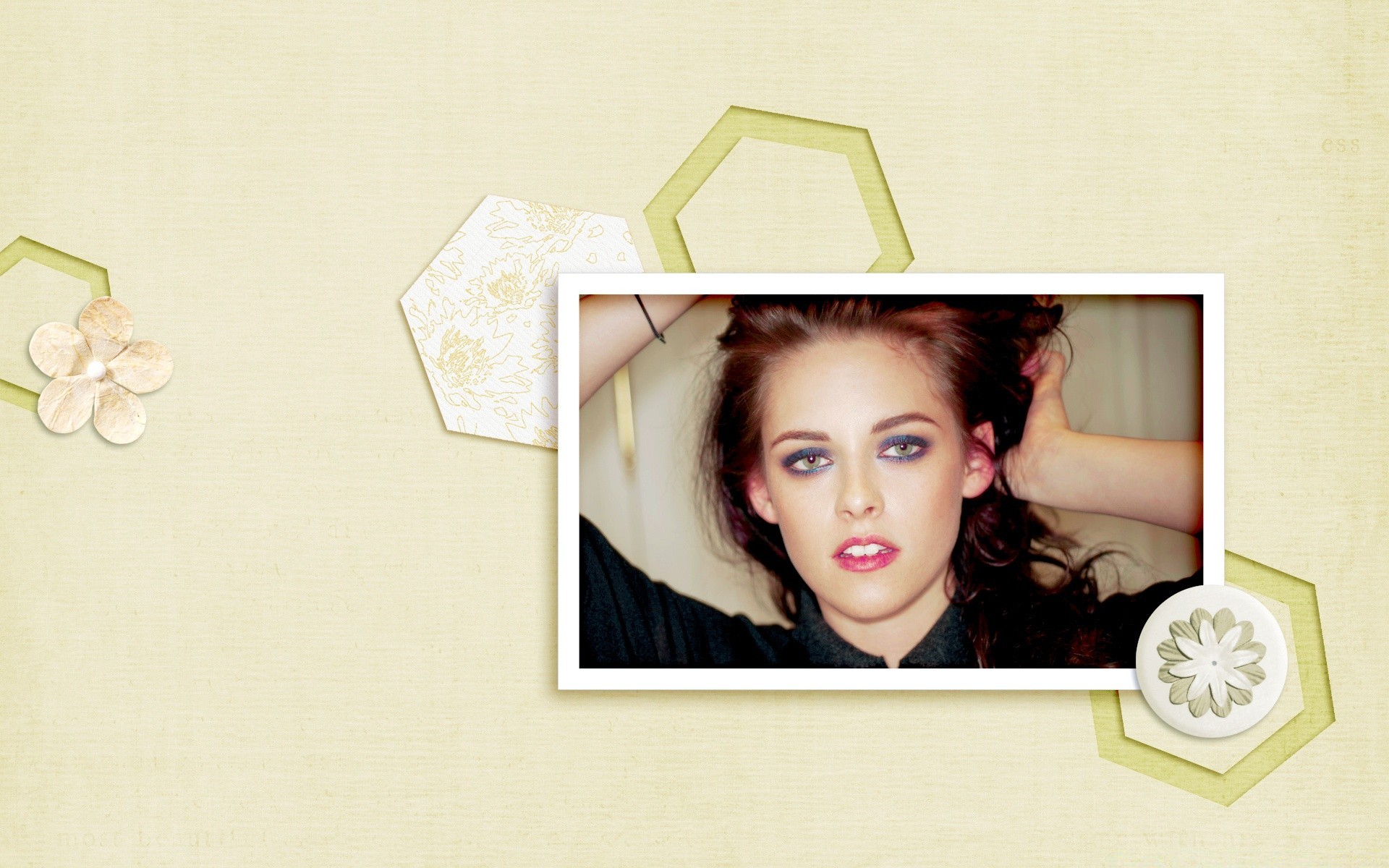 Foto da atriz emoldurada em um belo fundo