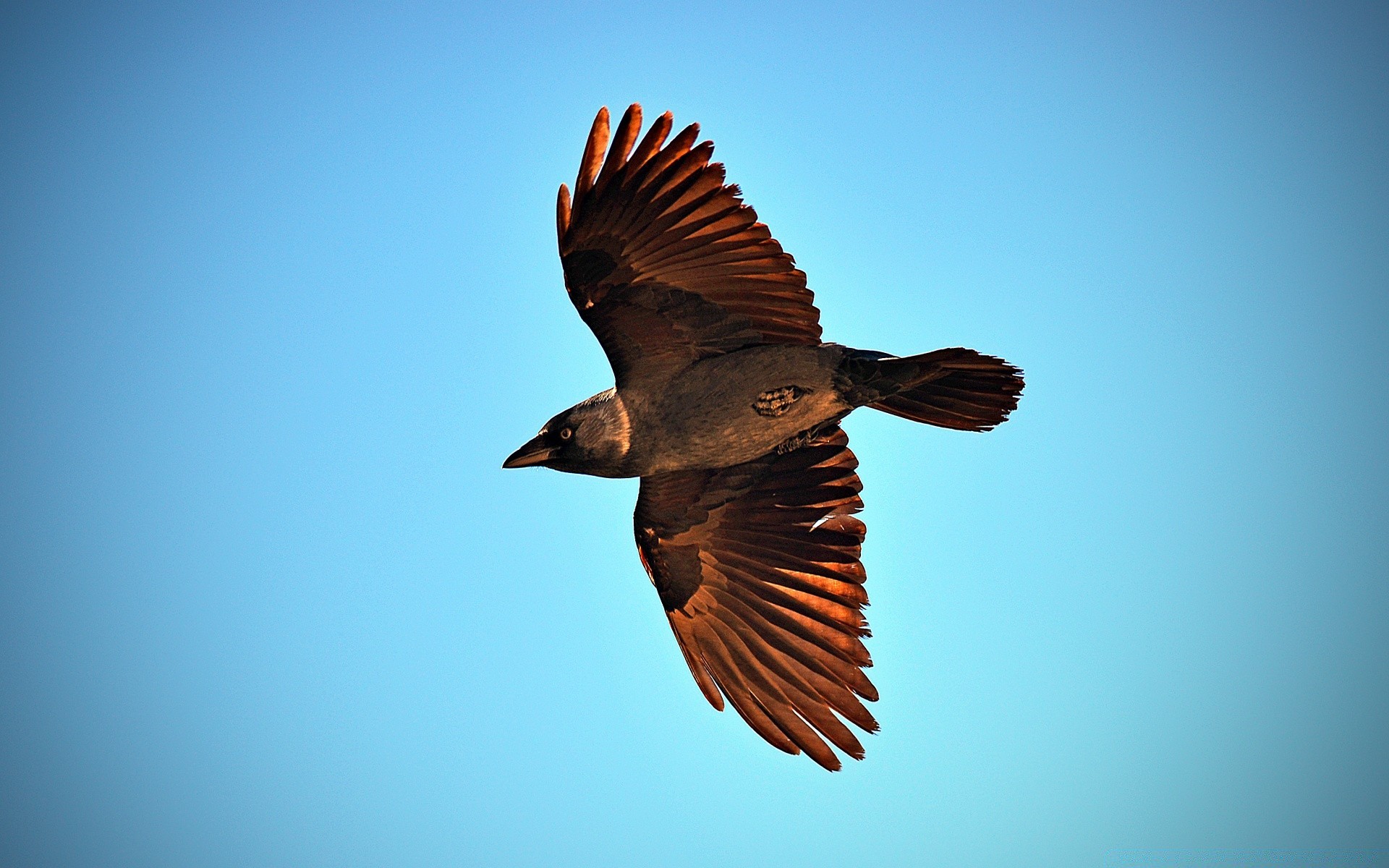 O pássaro balança as asas por todo o comprimento