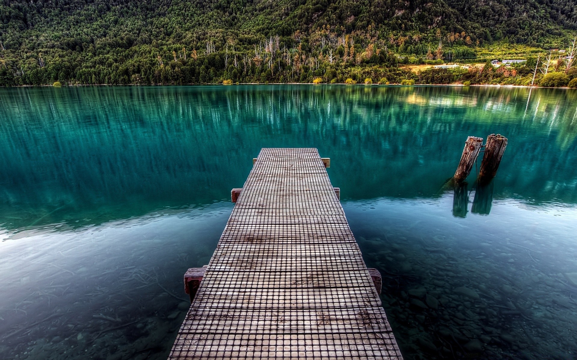 Cais na água azul do céu