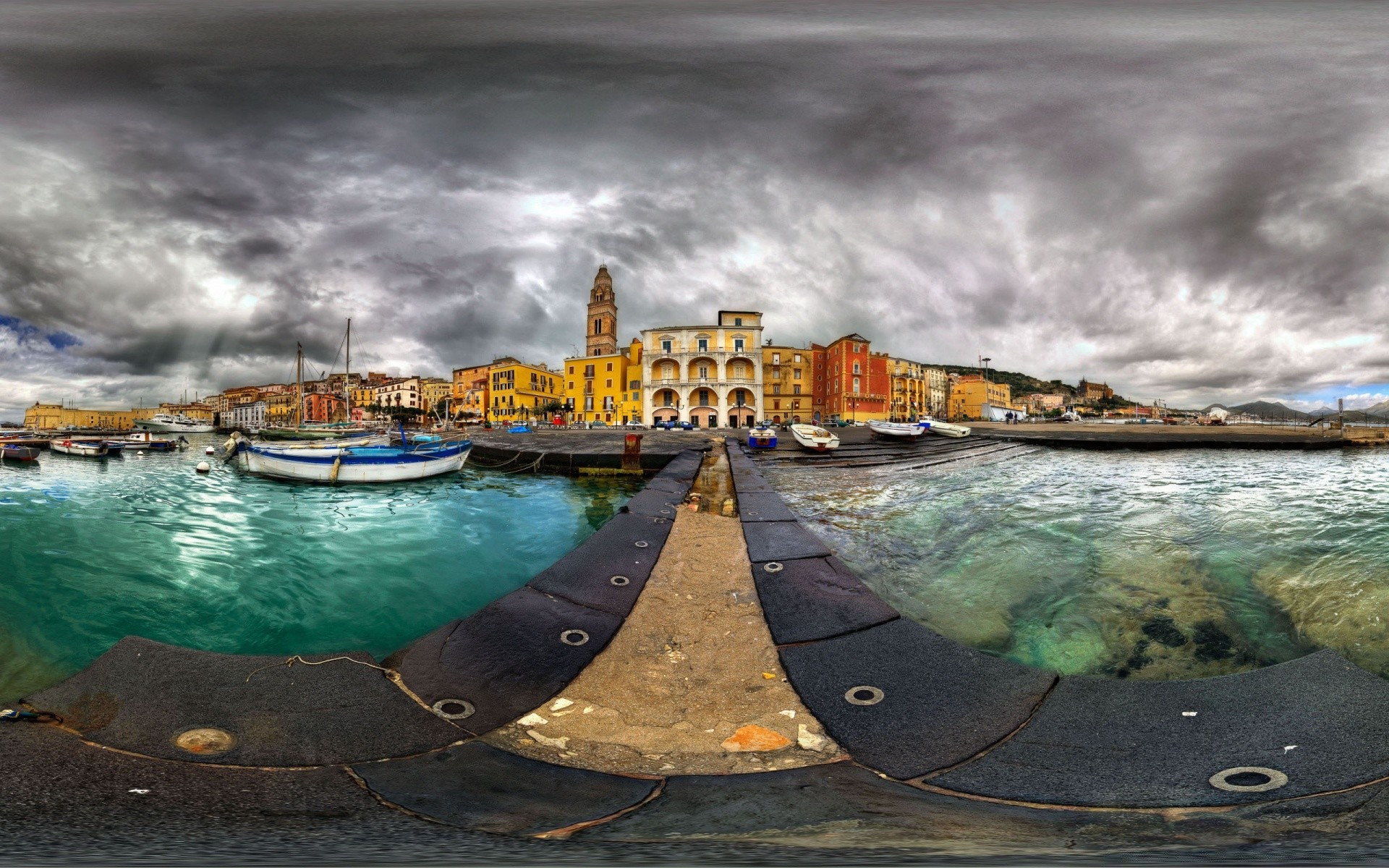 Pôr do sol roxo-carmesim. Barcos e navios no mar