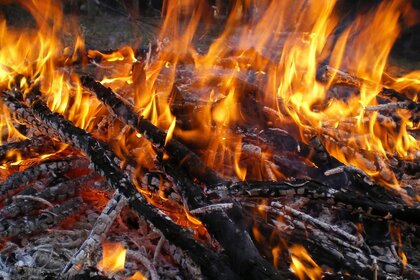 Chama brilhante de uma fogueira quente
