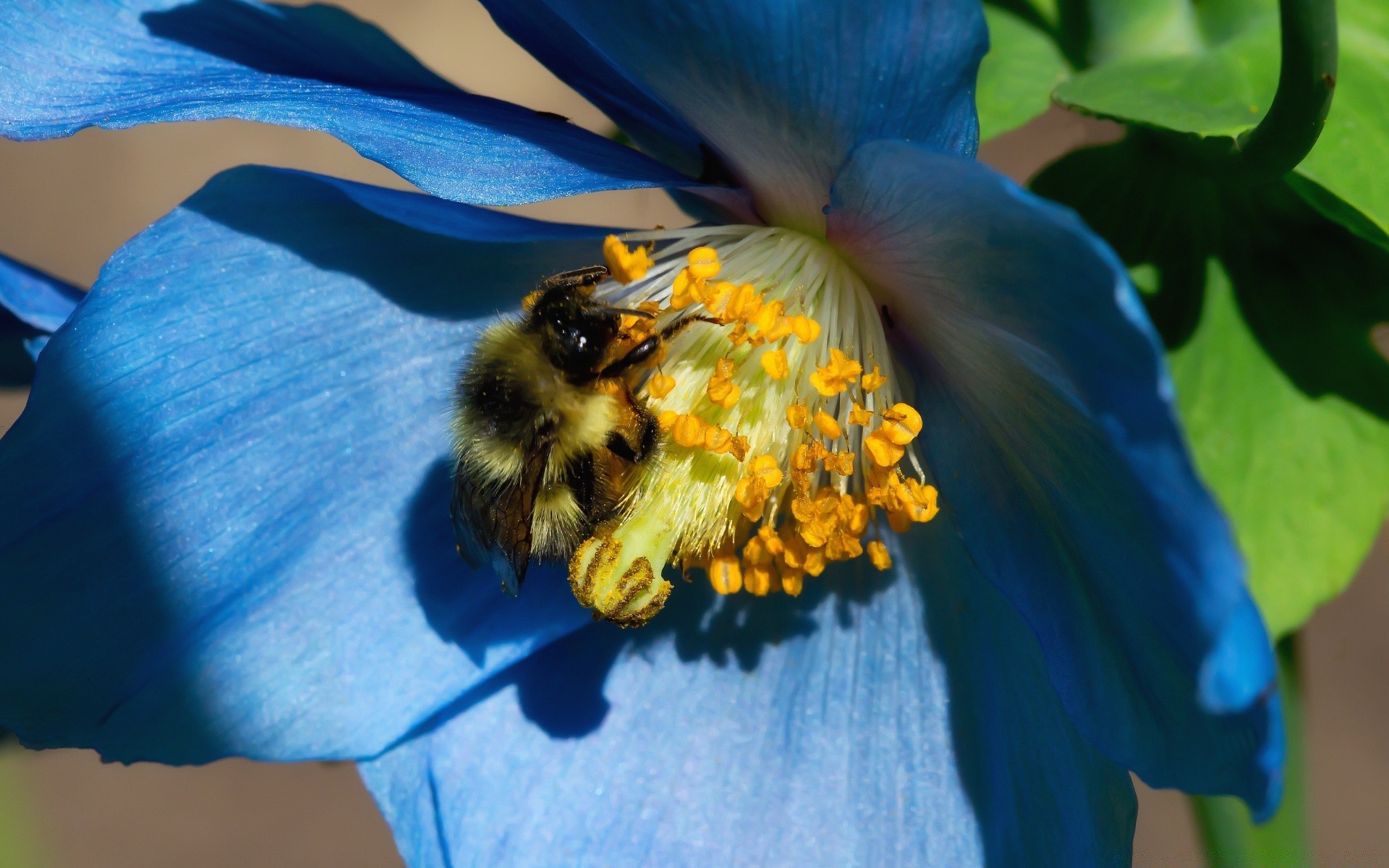Fotografia macro abelha em uma flor azul