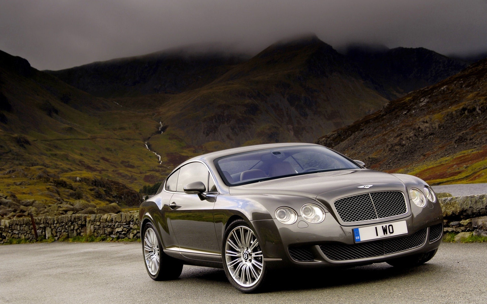 Bentley vermelho percorre aswalt iluminadas e desfocadas