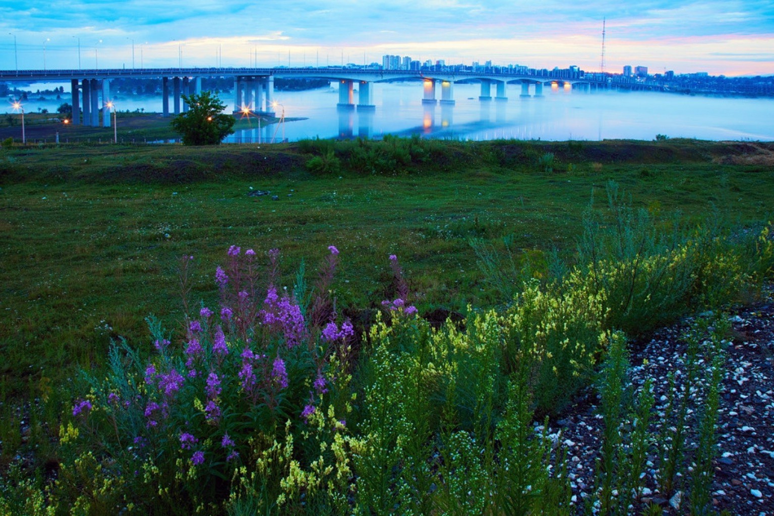 Ponte sobre o rio. Paisagem de neve de Inverno