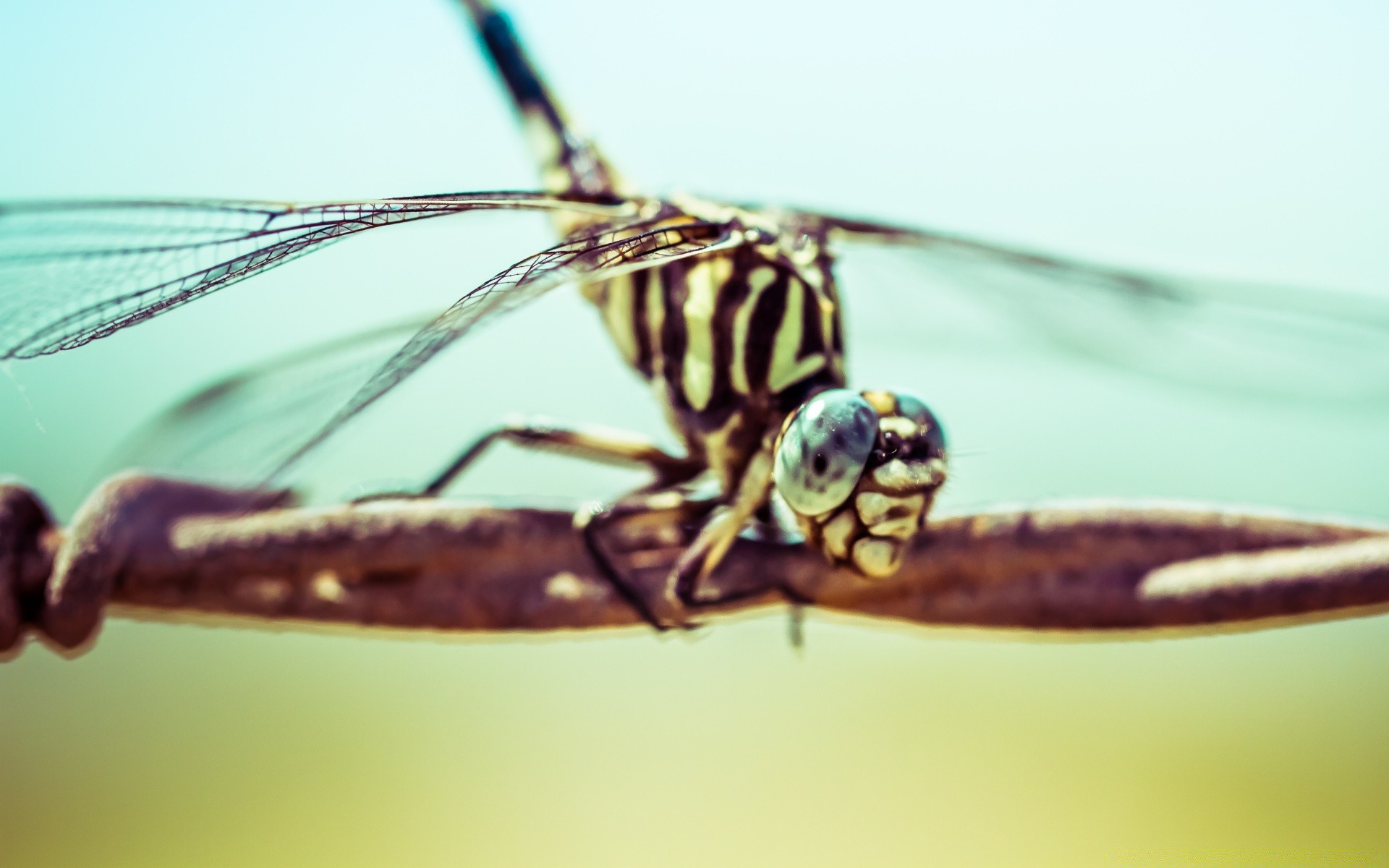 Fotografia Macro de uma abelha invertebrada com um nariz pontiagudo