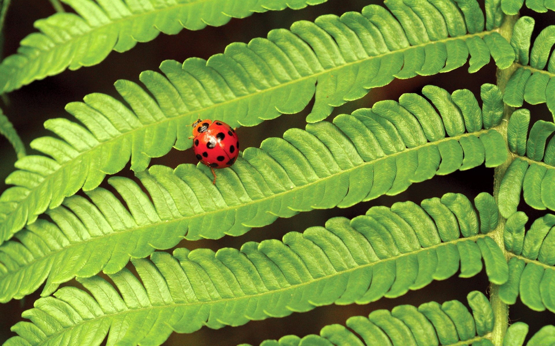 Joaninha em uma folha de samambaia