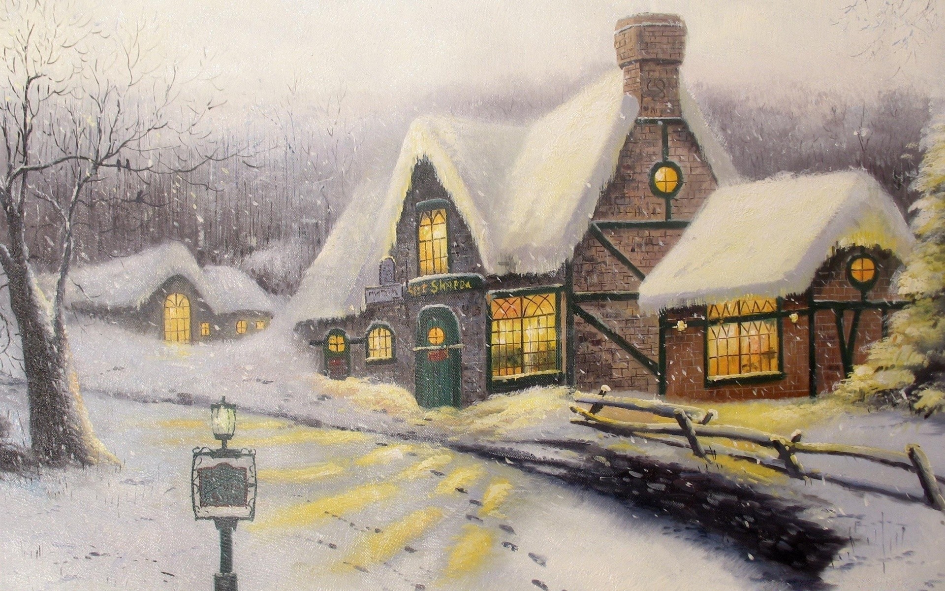 Sessão de fotos de Natal de uma criança em uma floresta de neve