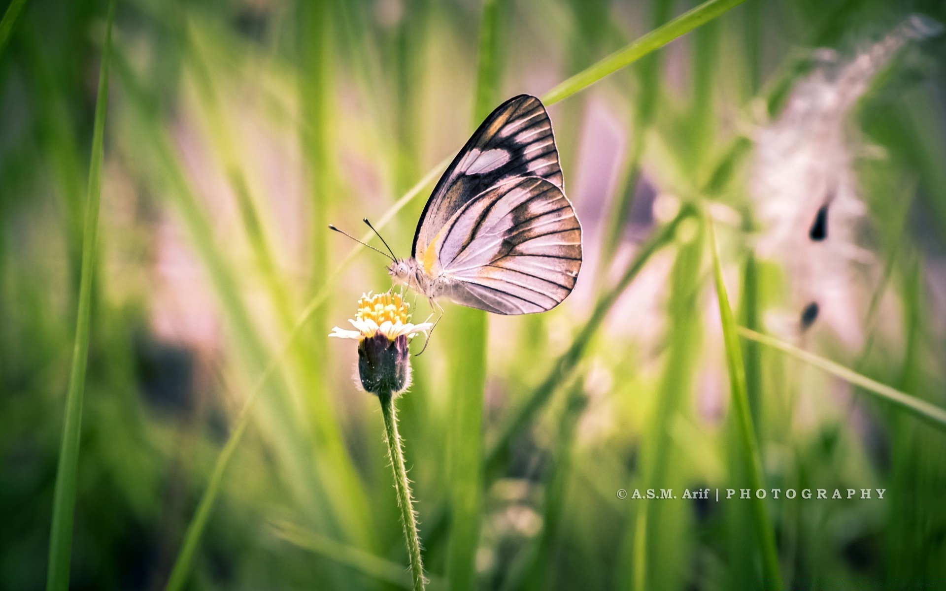 Borboleta rosa em uma flor. Borboleta na grama. Verão