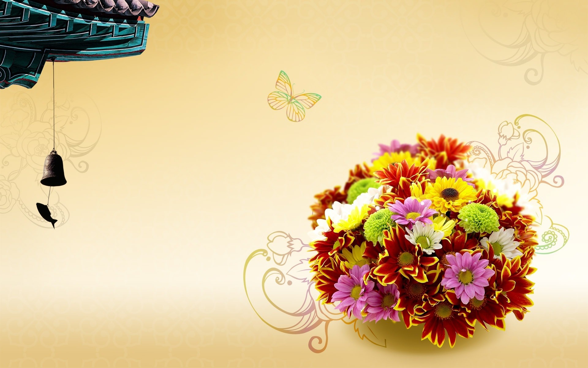 Borboletas circulam perto de um belo buquê