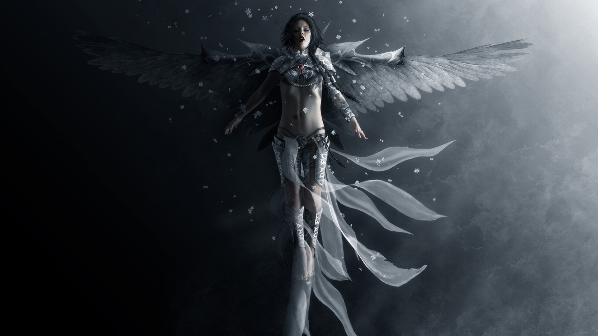 Filme assustador branca de neve e o caçador em um fundo escuro