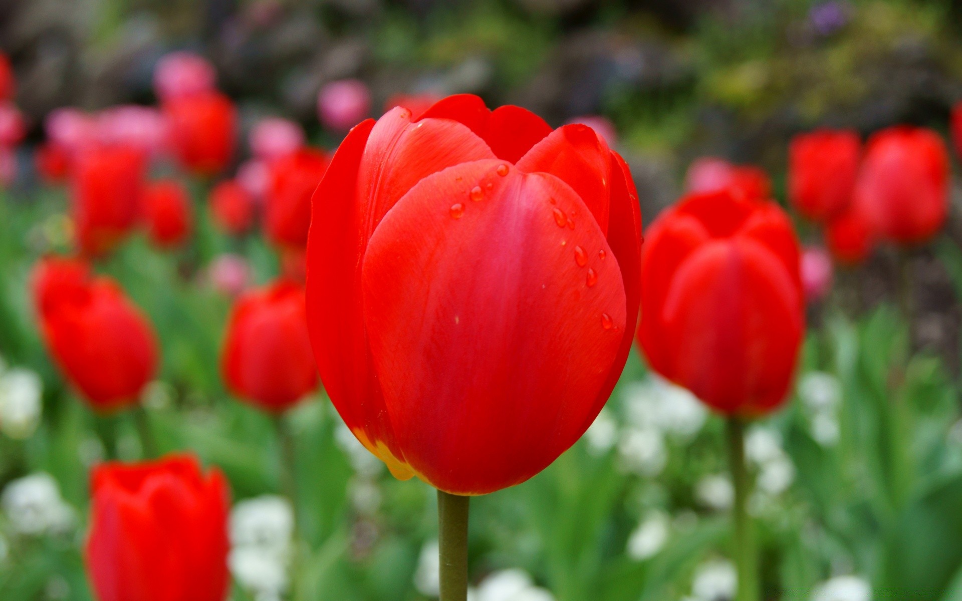 Tulipas vermelhas no prado
