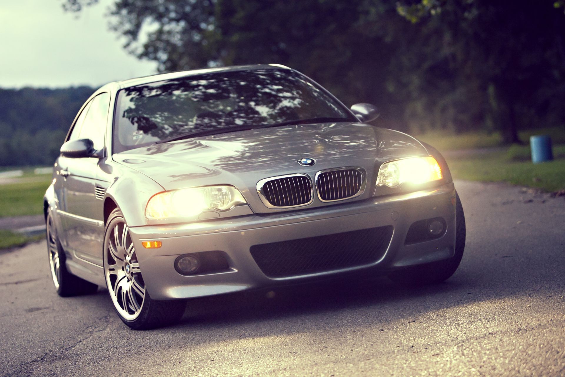 Carro na estrada com faróis ligados