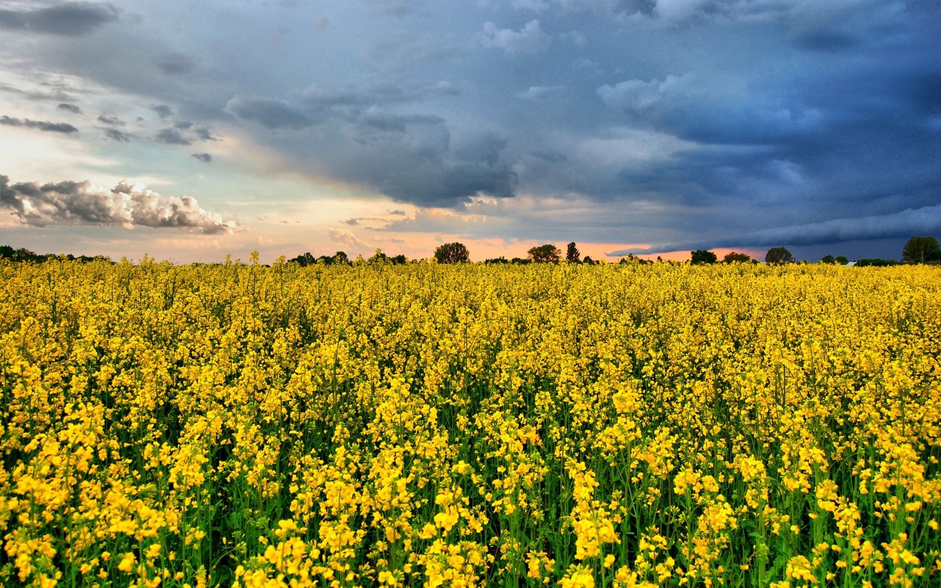 Campo de grama cortada recolhido em fardos ao pôr do sol