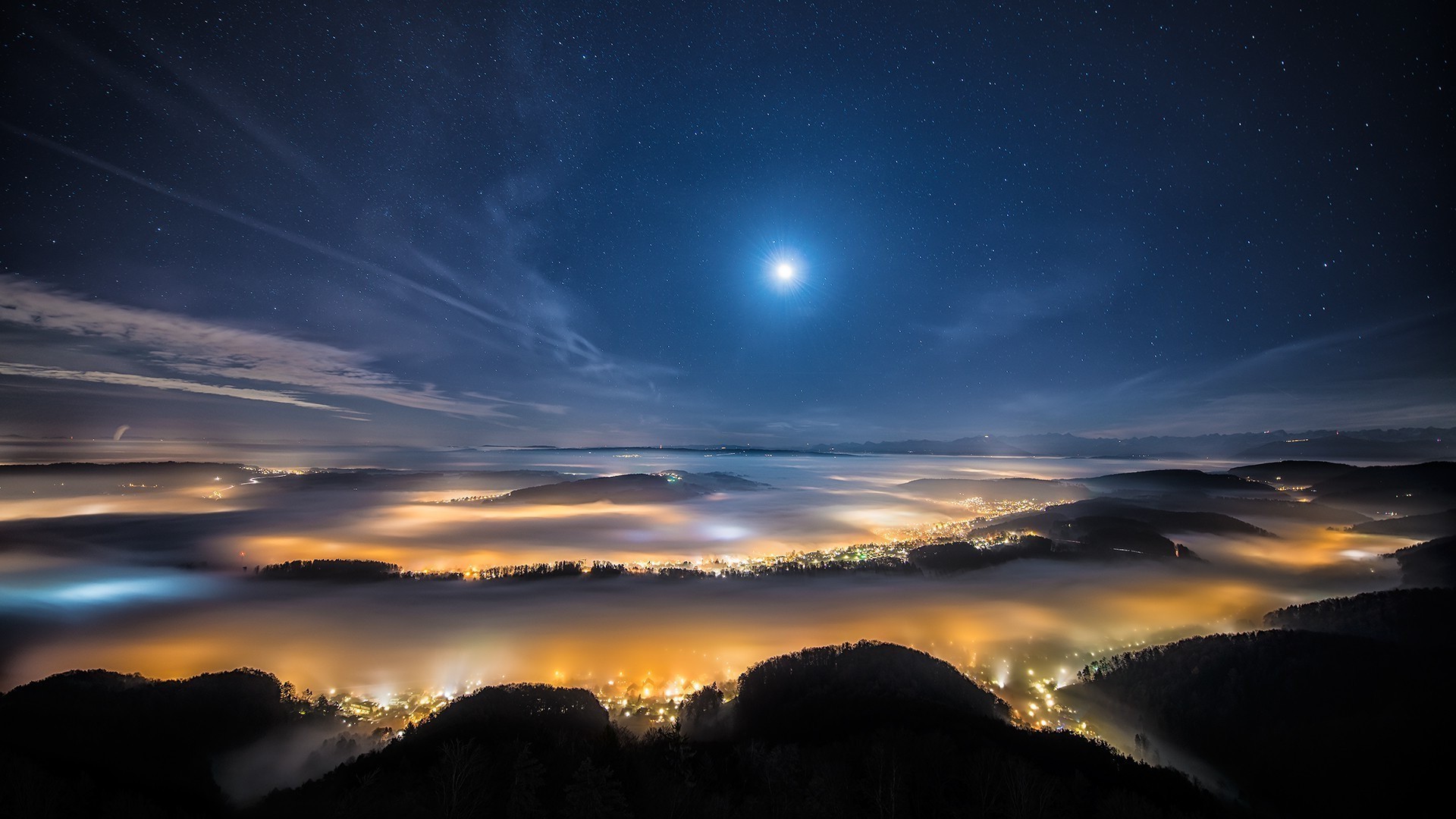 A beleza da natureza com uma combinação de pôr do sol e relâmpago